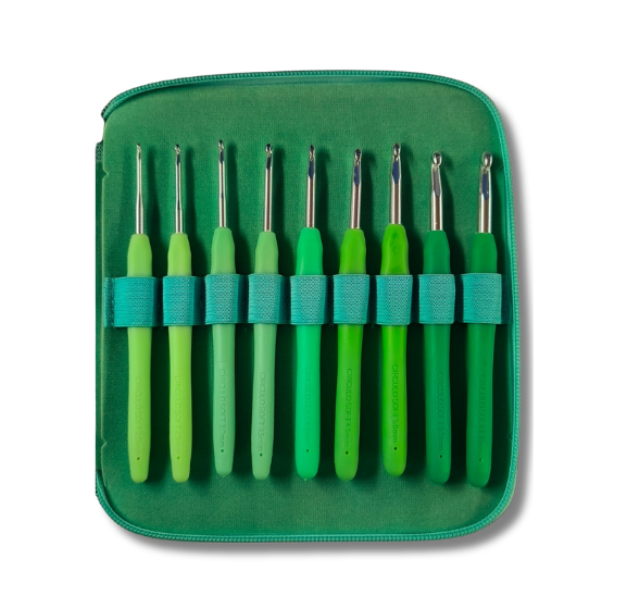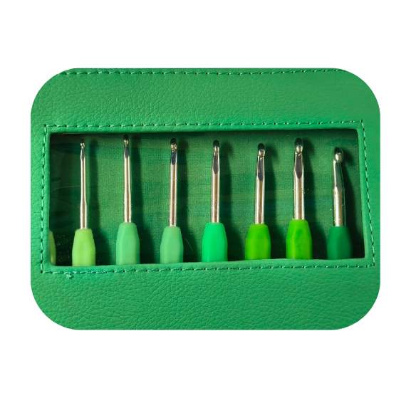 KIT ESTUCHE AGUJA CROCHET VERDE